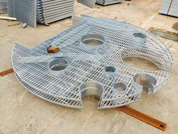 异形钢格板是根据客户实际需求制作出各种不规则形状的钢格板、主要有切角,割孔,切弧,扇形等,从而避免了货物到工地时再进行二次切割加工,从而使施工安装更快速,跟简单,也避免了现场切割造成镀锌层的破坏。